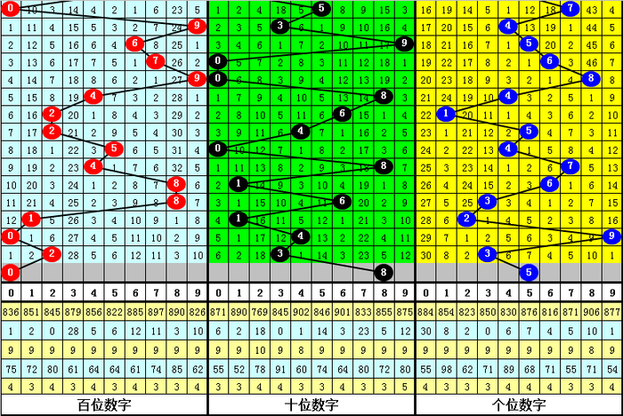 百位分析:最近7期百位分手开出奖号:5、4、8、8、1、0、2,百位振幅为8个点位,本期预测百位号码下落,精选一码0。