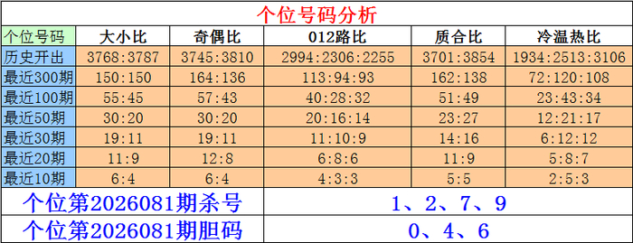枚举三十位第2026081期杀号:0、2、4、9