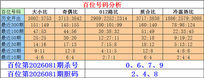 枚举三百位第2026081期杀号:0、6、7、9
