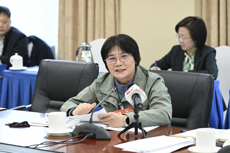 水庆霞在上海团审议世界东谈主大常委会责任进展现场。 图源上不雅新闻