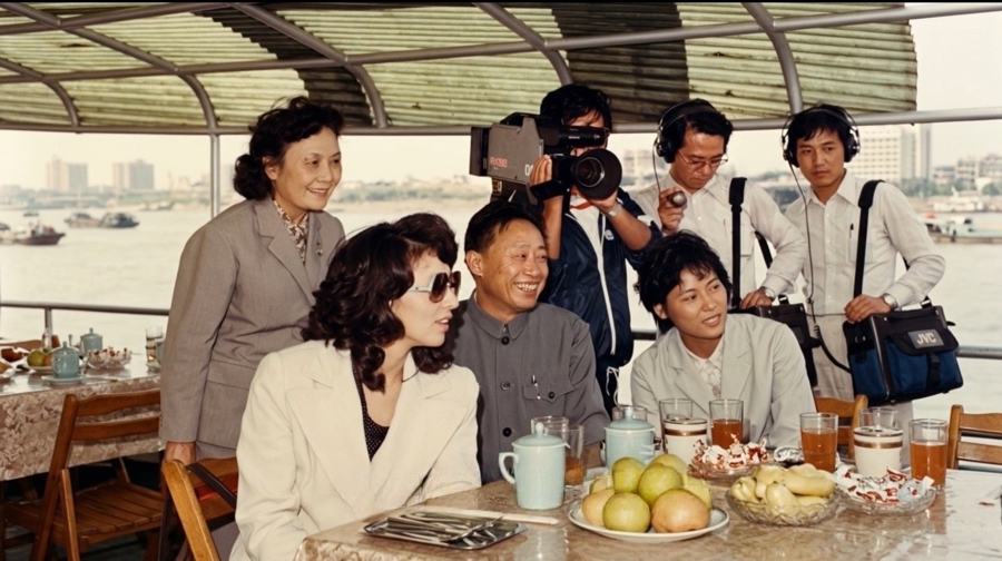 上世纪80年代,徐桑楚(中)和白杨(后排左一)与栗原小卷(前排左一)等电影东谈主共游黄浦江