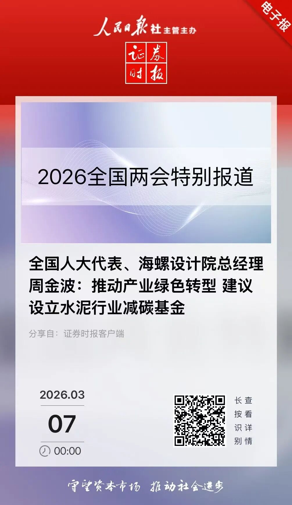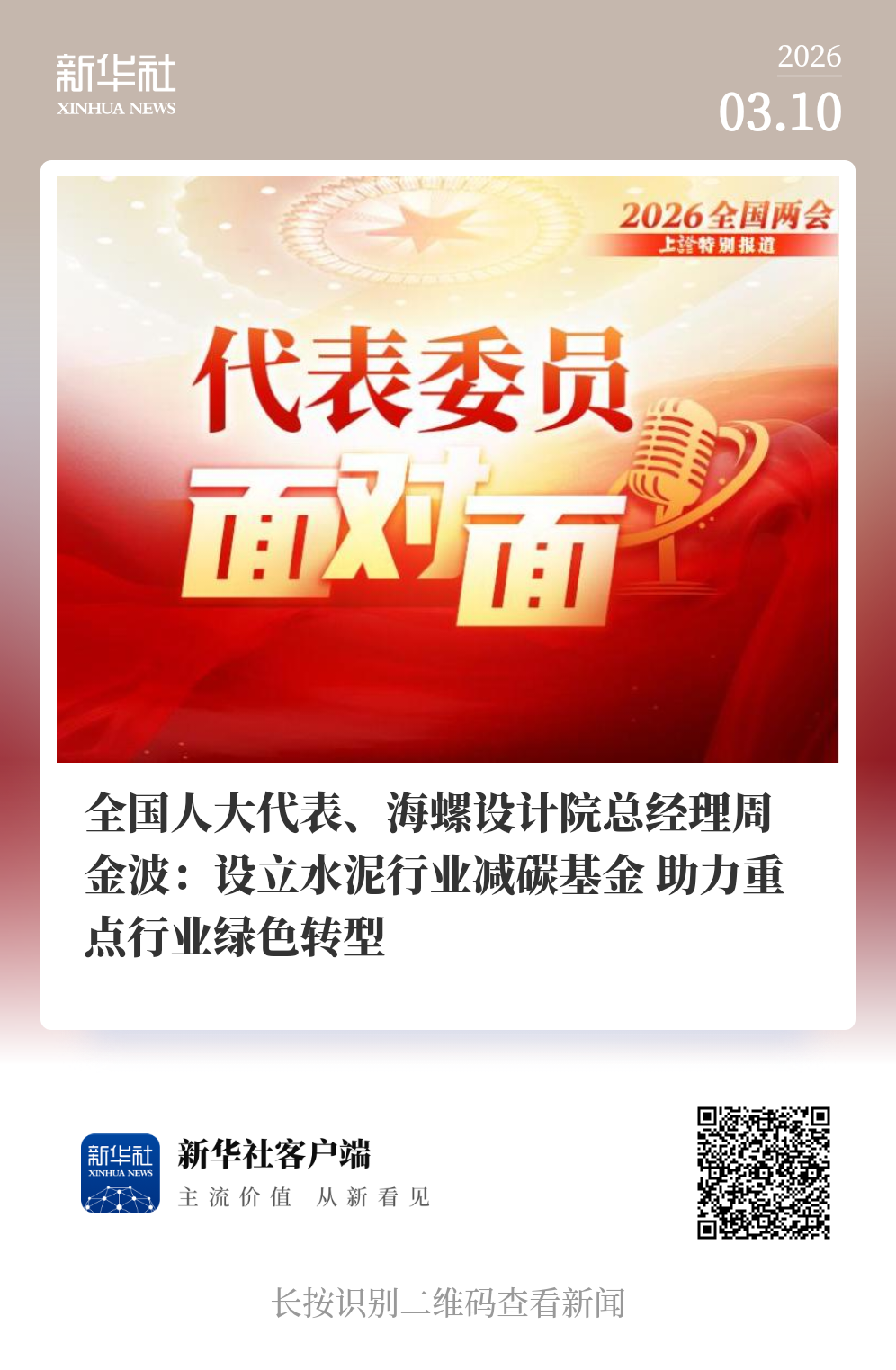 (坎坷滑动稽察全文) ]article_adlist-->深耕水泥行业数十载,宇宙东谈主大代表、安徽海螺建材想象参谋院有限包袱公司(下称“海螺想象院”)党委通知、总司理周金波在本年宇宙两会期间,连续从本质起程,为行业高质地发展建言献计。