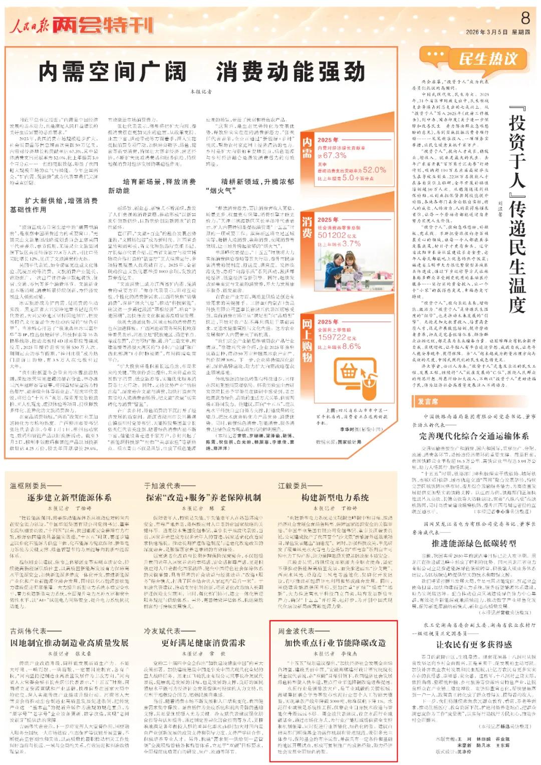 周金波代表——加速重心行业节能降碳纠正