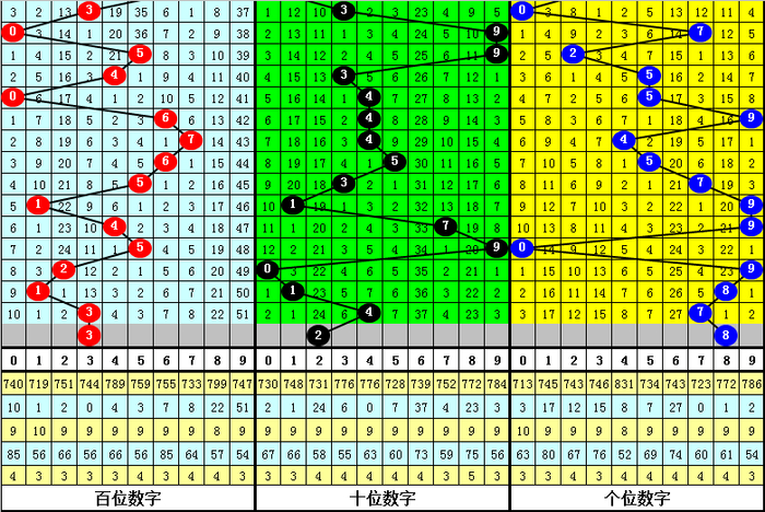 百位分析:该位上期奖号为3,出现0路、奇数、小 号,在前11期奖号,该位012路比为4:4:3,012路号码出号相配,现在012路号码遗漏期数分裂为0、1和2,近期百位注意0路号码走热。