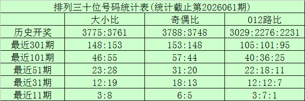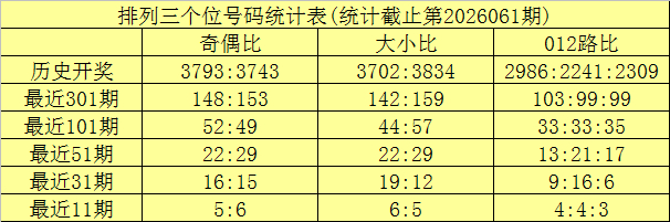 上期转头:罗列三第2026061期奖号为:347。奖号格式组六,大小比1:2,奇偶比2:1,012路1:2:0。
