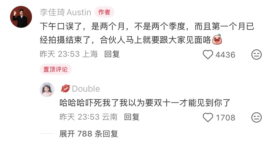 本日半夜,李佳琦也下场辟谣:“莫得退休,‘两个季度’是口误,是缺席两个月,第一个月依然拍摄限度,《搭伙东说念主》立时就要跟公共碰面了。”