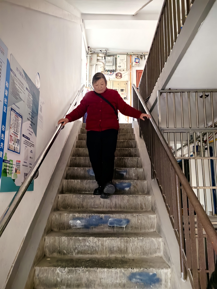 红七居民区是建于上世纪80年代的老旧小区,居民以上海“小三线”回沪职工和本地征地农民为主。随着时间推移,老龄化程度日益加深——60岁以上老人近2000人,占比接近一半。许多高龄居民上下楼只能依靠单侧扶手,下楼时无处借力,存在安全隐患。同时,由于缺乏公共晾晒区,居民在绿化带、消防通道拉绳晾晒的情况屡见不鲜,既影响环境,也带来安全问题。