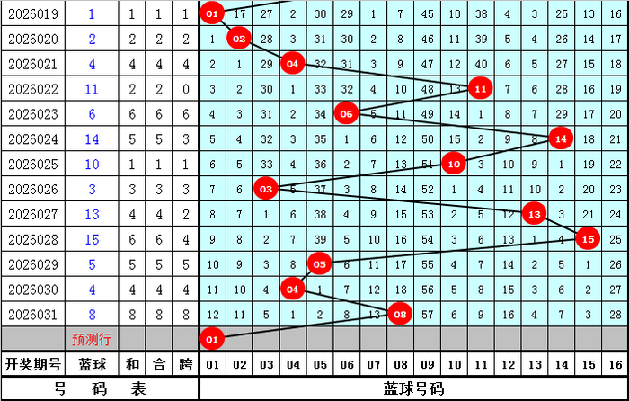 蓝球推选:第032期历史同时开奖中,蓝球开出频次诀别为:02、05、10、12、14出现0次,01、08、09、11出现1次,04、06、07、15出现2次,16出现3次,03、13出现4次,本年同时关怀蓝球号码01。