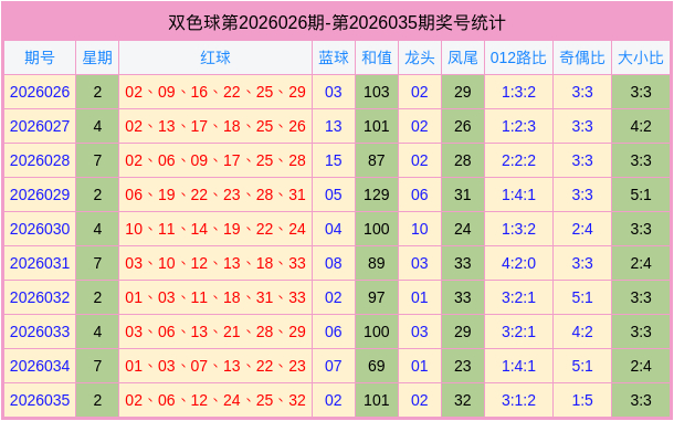 双色球2026035开奖号码为:02、06、12、24、25、32 + 02。