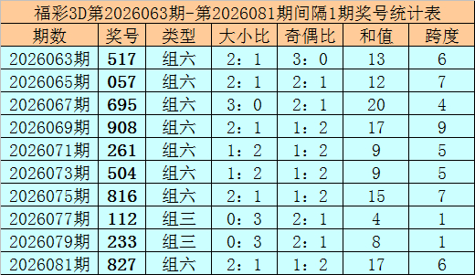 上期转头:福彩3D第2026082期奖号:942。