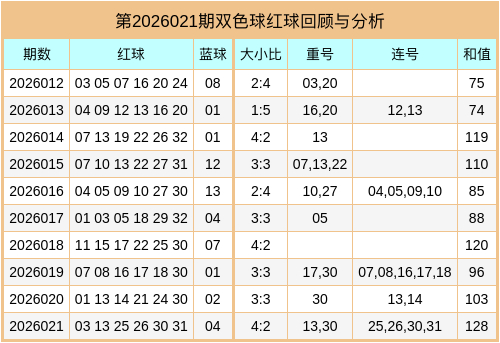 双色球2026021期开奖,本期奖号:红球03、13、25、26、30、31,蓝球04。